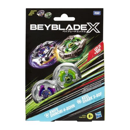 Beyblade X: Pack doble Knife Shinobi 4-80HN y Keel Shark 3-80F