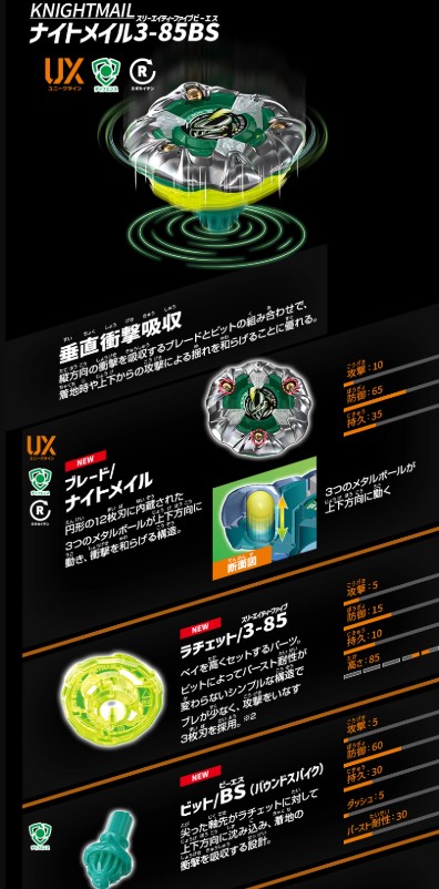 Vive la emoción de la próxima generación de arenas, lanzadores y tops Beyblade con el Kit Beyblade X: KnightMail Customize Deck Set UX-10 Takara Tomy.